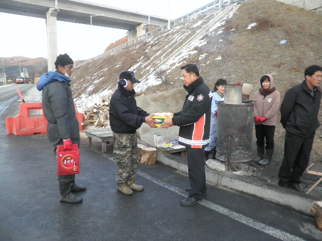 구제역 방역에 힘쓰는 의용소방대 격려~~