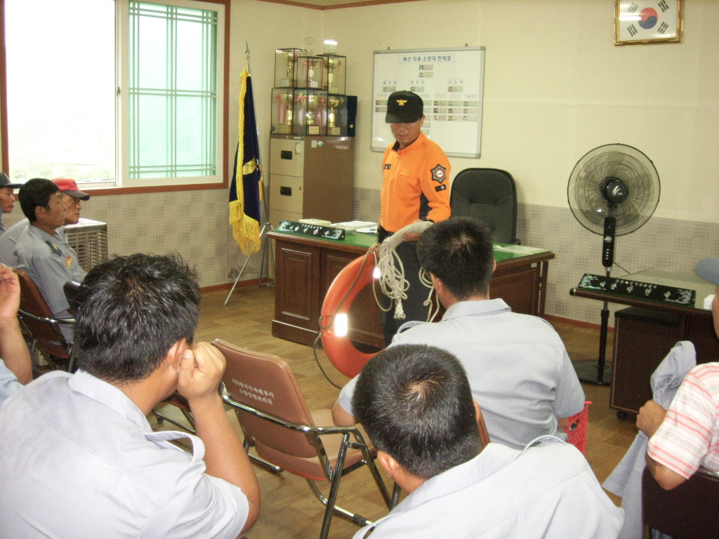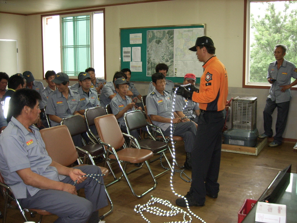 소양호수난구조대(대장 소방위 홍순도)에서는 북산면 추곡리 의용소방대 사무실에서 남ㆍ여 의용소방대원을 대상으로 7월 정기교육훈련 일환으로 여름철 수난사고를 대비하여 익수자 구조, 응급처치법 교육훈련 및 화재없는마을 선정과 관련하여 감지기 설치, 유지관리법 교육을 실시하였습니다.