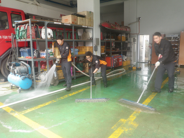 화천119안전센터(센터장 소방경 신상건)에서는 한발짝 다가온 봄을 맞이하여 청사 대청소를