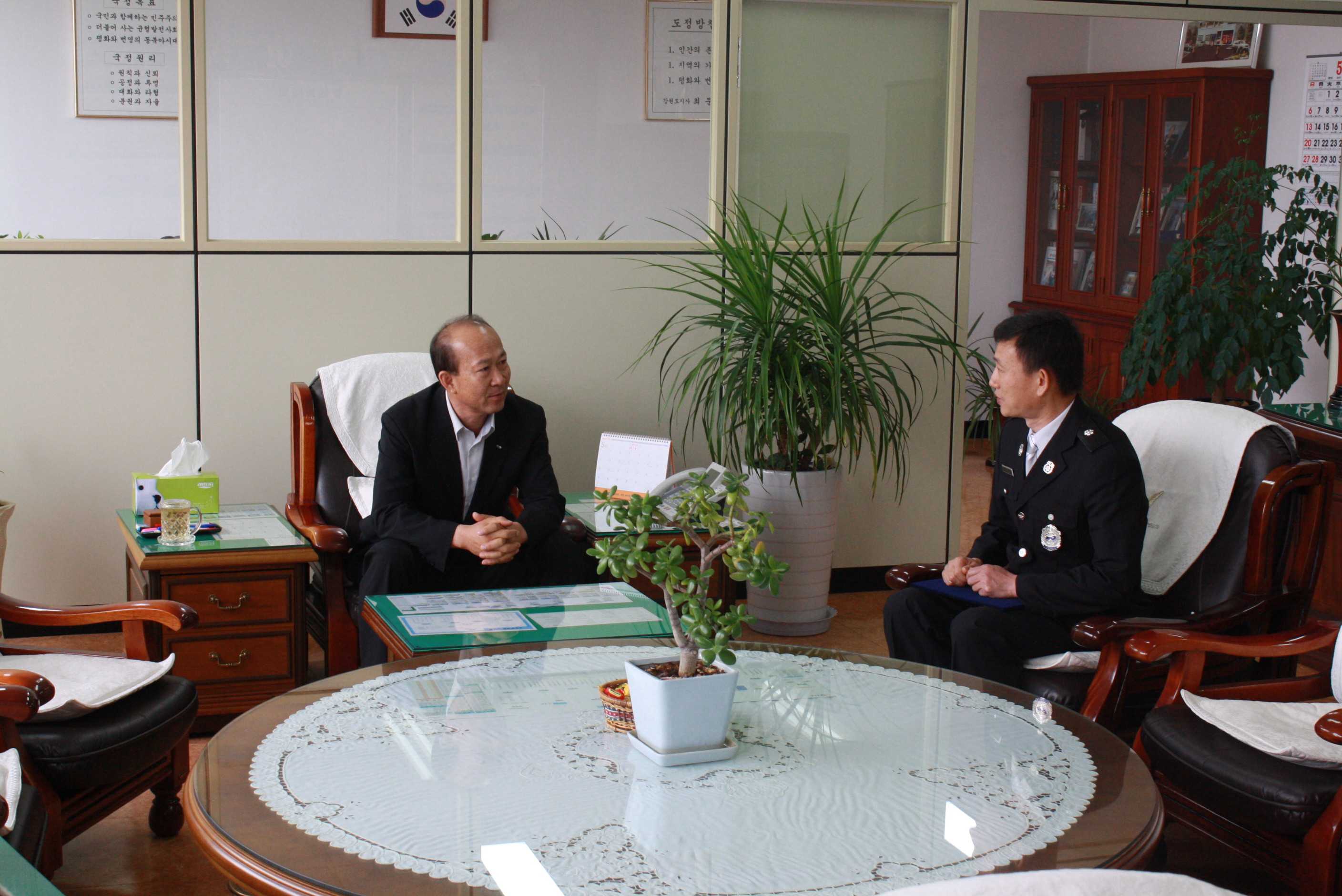 춘천소방서(서장 조완구) 에서는 2012.05.18(금) 승진임용된 직원(소방위 이철한)에 대한 신고식을 가졌습니다. 서장님께서는 그동안의 노고를 치하하셨고, 앞으로도 더 열심히 도민의 안전을 위하여 노력하여 줄것을 당부하셨습니다.