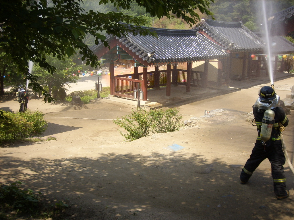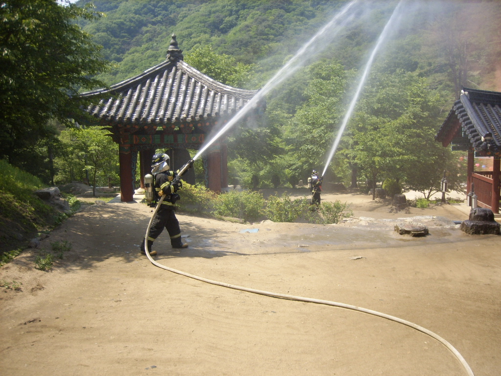 현장지휘대 감독아래 문화재 관리자 및 시청 관계자 들과 초기화재진압 훈련. 소화전 점령 등 화재의 초기대응훈련을 실시하여 문화재의 소중함을 알게 되는 시간이 되었습니다.