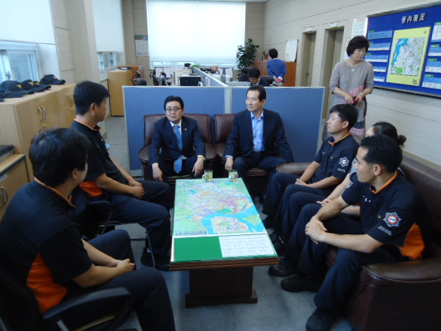 8. 6일 무더운 날씨에 소방활동(벌집제거등)에 119대원님들의 노고가 많다고 깜짝 방문하여