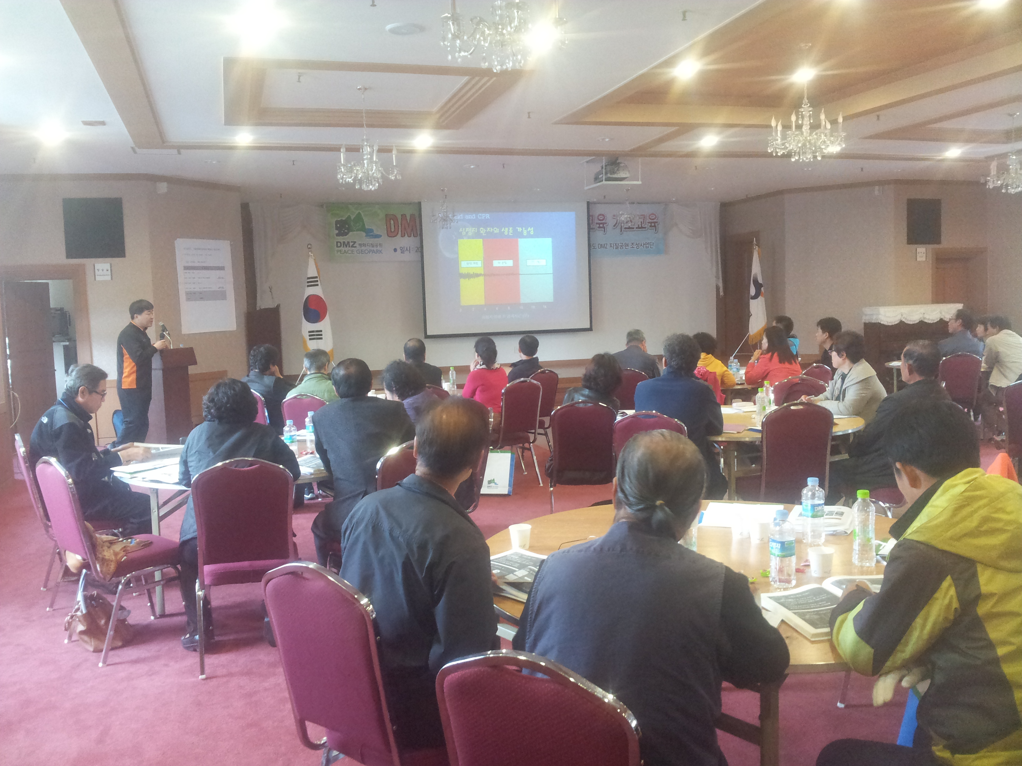 DMZ 평화지질공원 해설사분들을 대상으로 화천군 종합사회복지관에서 응급처치 교육 실시하였습니다. 교육생이신 해설사분들이 관심과 질문이 많았습니다. 위기 상황 발생시 도움이 되시길~