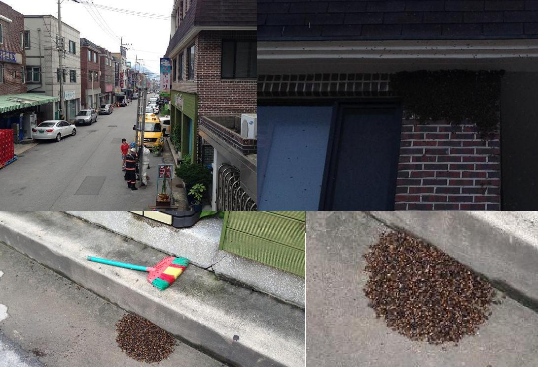 오늘 아침부터 벌집제거 신고가 들어와서 출동했는데, 벌집이 아니라 벌들로 집을 이룬것 같았습니다...