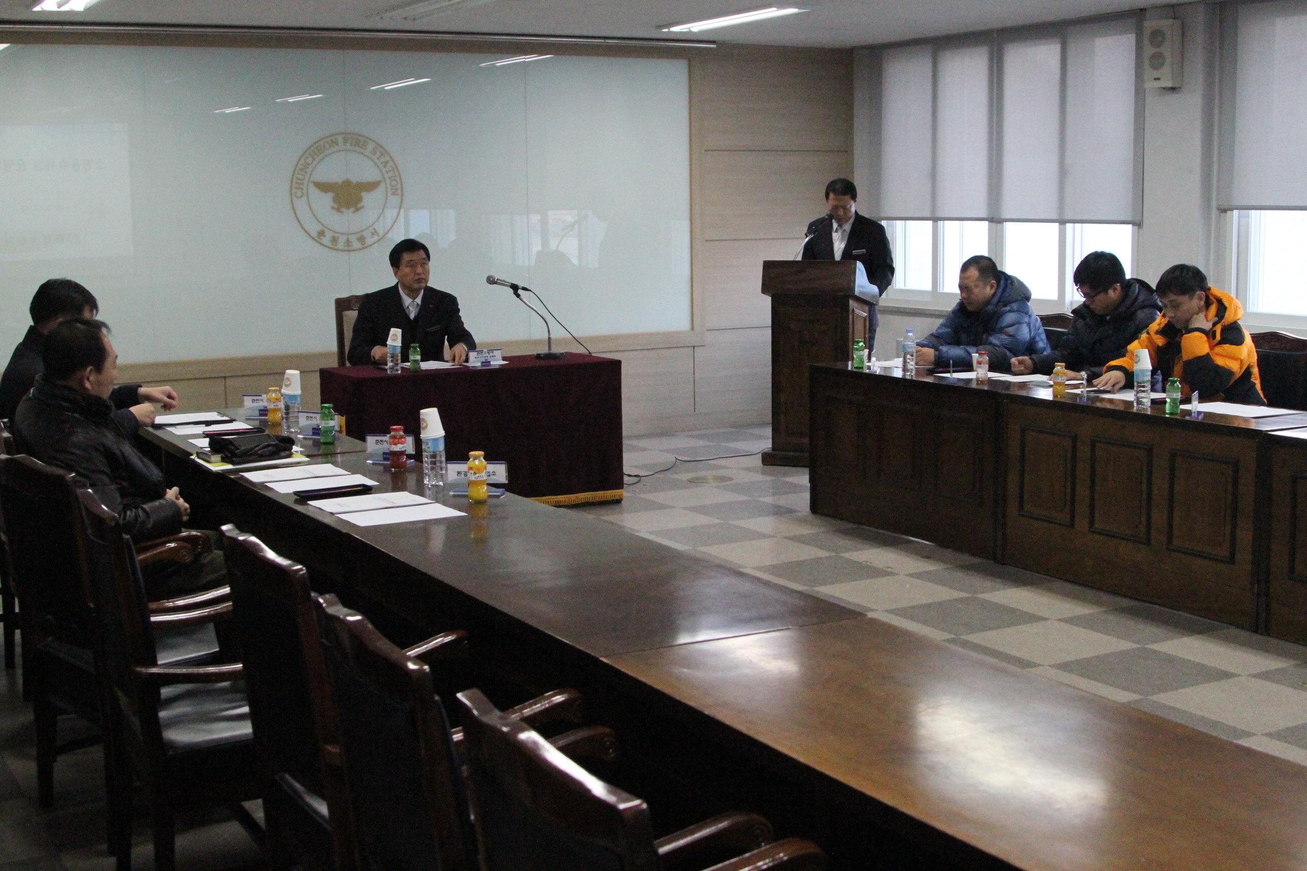 춘천소방서(서장 박창진)는 12.18(금) 15:00 춘천소방서 소회의실에서 2015년 소방용수시설 운영위원회를 개최하였다. 춘천시, 화천군, 양구군 관련부서 10여명이 참석한 가운데 소방용수시설 현황, 소방용수운영 문제점, 개선방향, 유관기관 협조 및 당부사항등에 관하여 회의를 실시하였다.