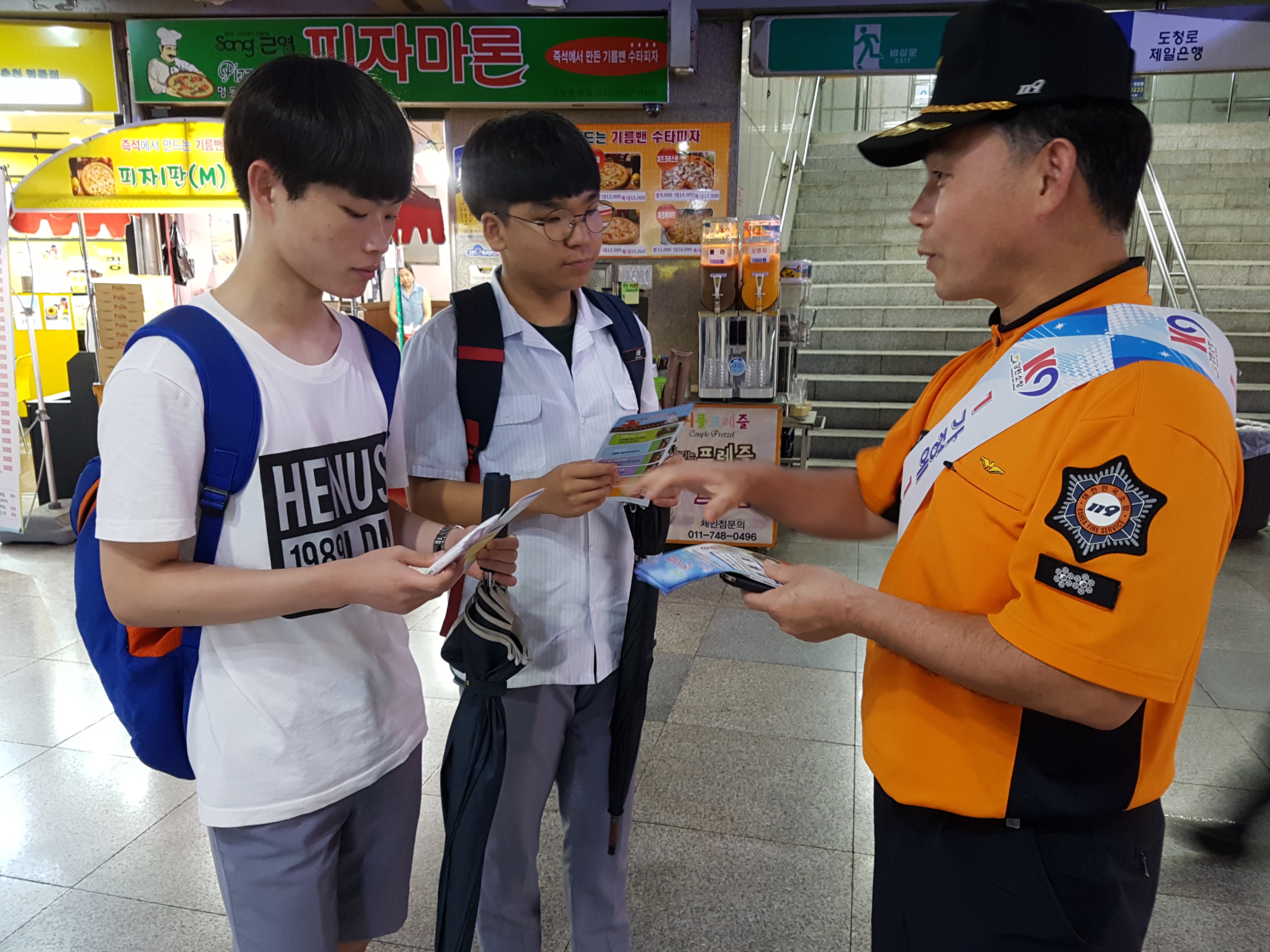 춘천소방서(서장 안중석)는 4일 오후 2시 중앙로 지하상가 만남의 광장 일원에서 10개 유관기관·단체 관계자 100여명이 참여한 가운데 제256차 안전점검의 날 연계하여 합동안전캠페인을 실시했다. 이번 캠페인에서는 주택용소방시설 설치촉진 홍보 가두 캠페인, 여름철 폭염·물놀이 안전사고 예방 캠페인 및 119신고앱 설치를 당부하고 전단지 등 소방홍보물품을 배부했다.