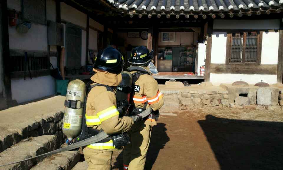 현장대응과 진압대는 문화재 보호 및 산불대비 합동훈련에 임함.