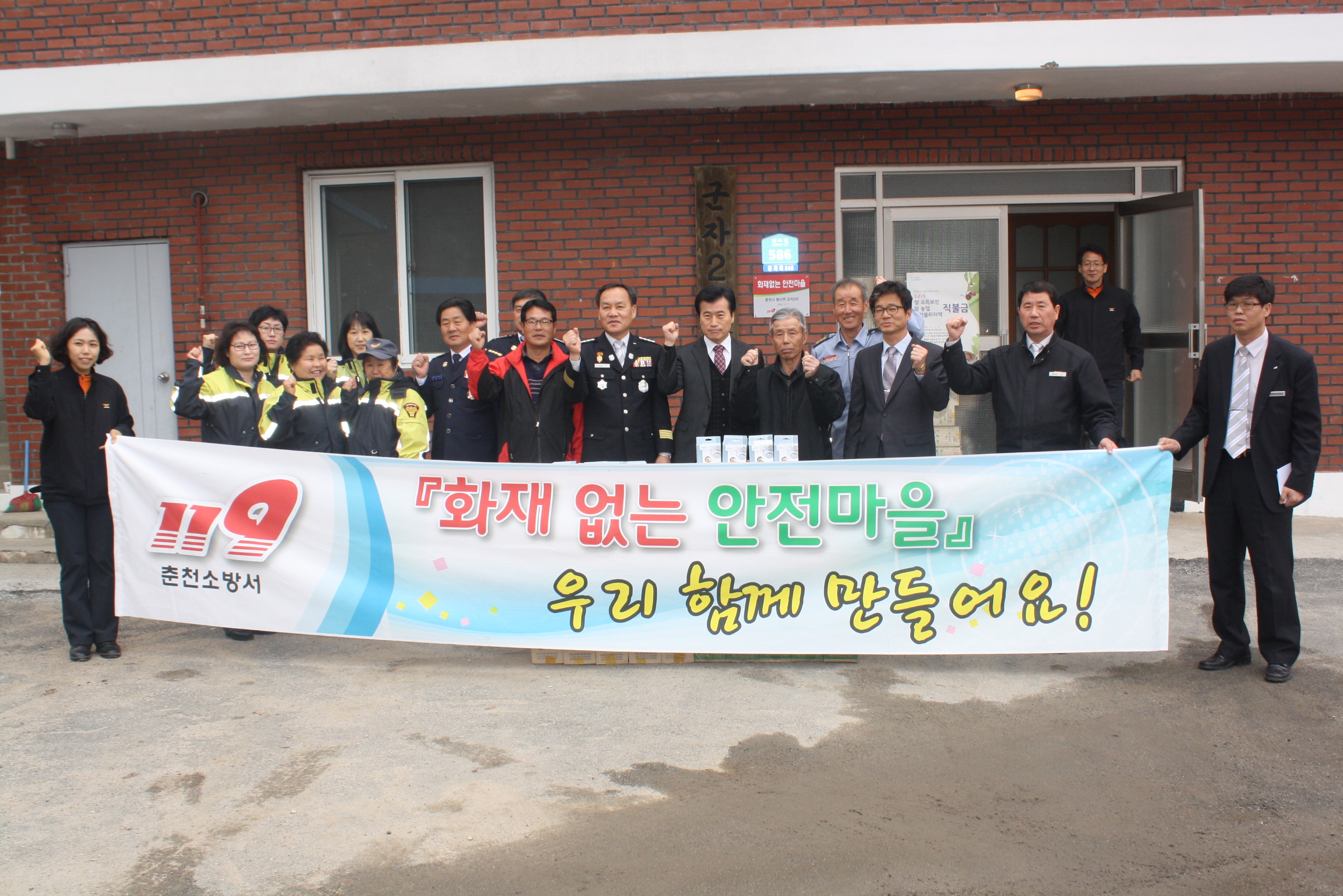 한윤규 이장님을 명예소방관으로 위촉, 화재없는 안전마을 현판식 부착, 소화기 및 단독경보형 감지기 기증