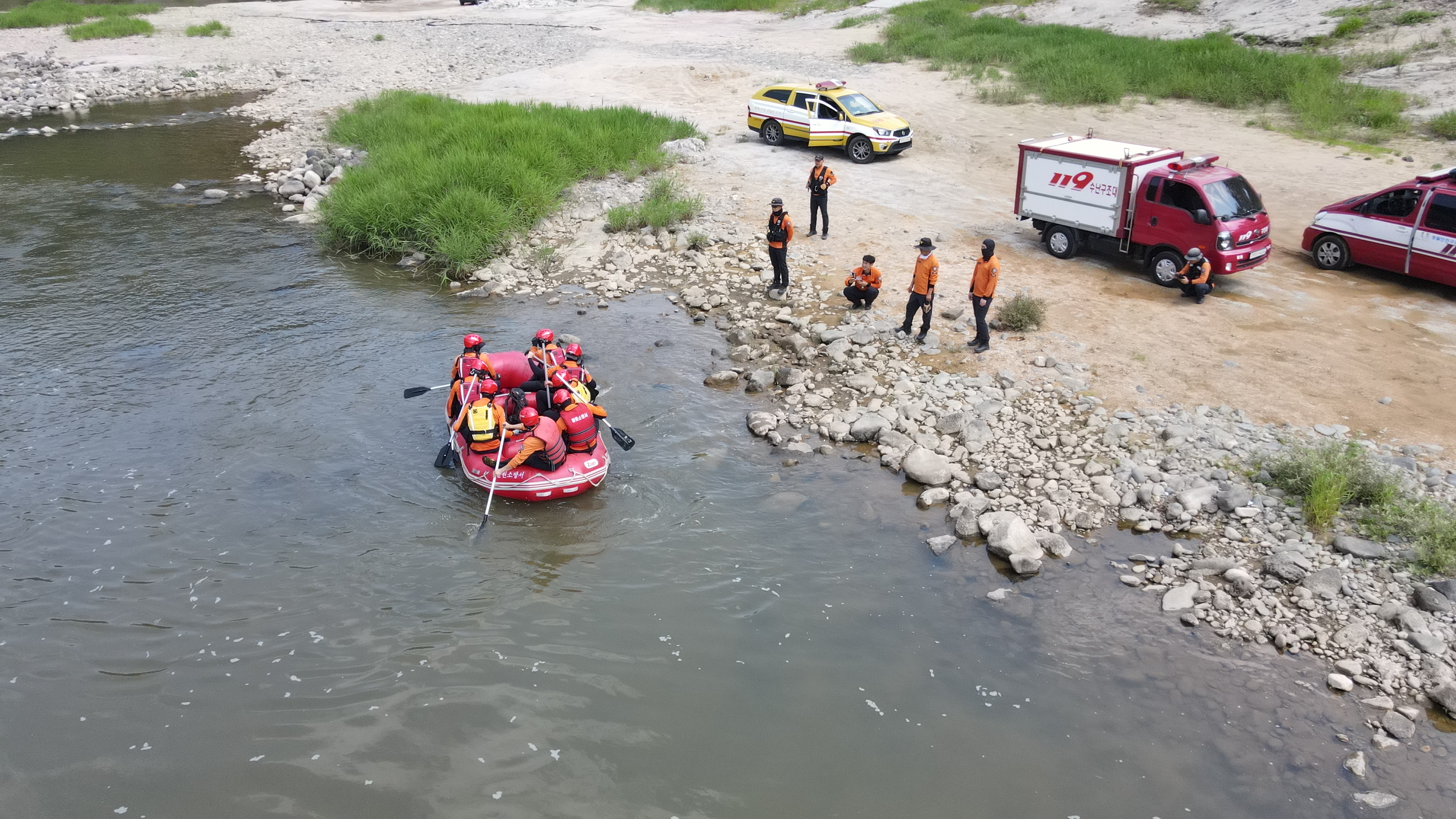 ○ 훈련에는 119구조대장을 포함한 구조대원 16명이 참여했으며, ▲급류 지역 내 고립자 구조 ▲구조용 래프팅 보트 조작 및 운항 ▲구명줄 투척 및 인명 인양 등의 실전 과정을 반복 숙달했다. 특히 실제 상황을 가정한 구조 시나리오를 적용해, 구조대원들의 현장 대응 능력 향상에 초점을 맞췄다.