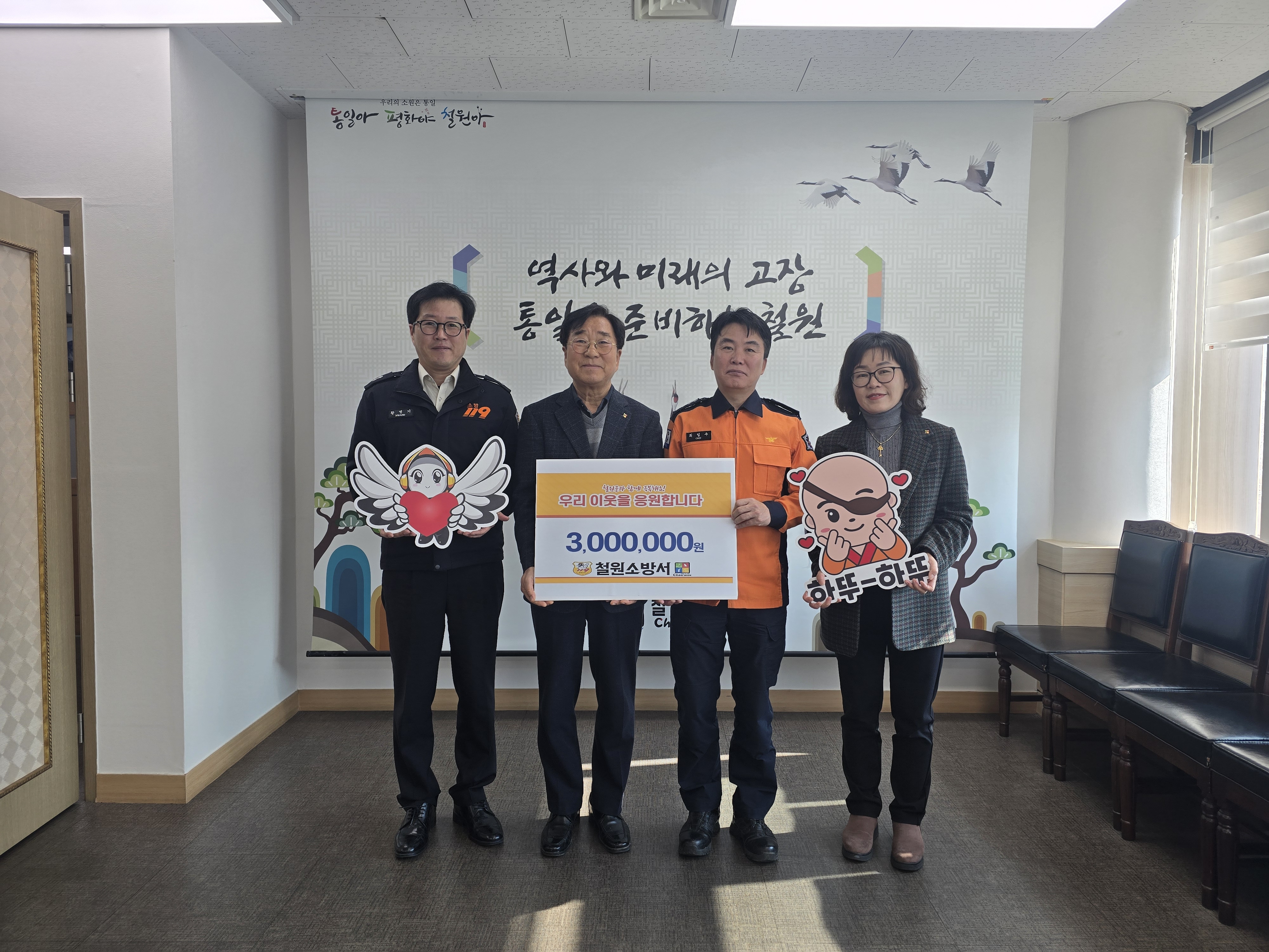 철원소방서(서장 최임수)는 2026년 설 명절을 맞아 2일 철원군청에서 생활 형편이 어려운 이웃들이 따뜻한 명절을 보낼 수 있도록 이웃돕기 성금 300만원을 철원군수에게 전달했다.