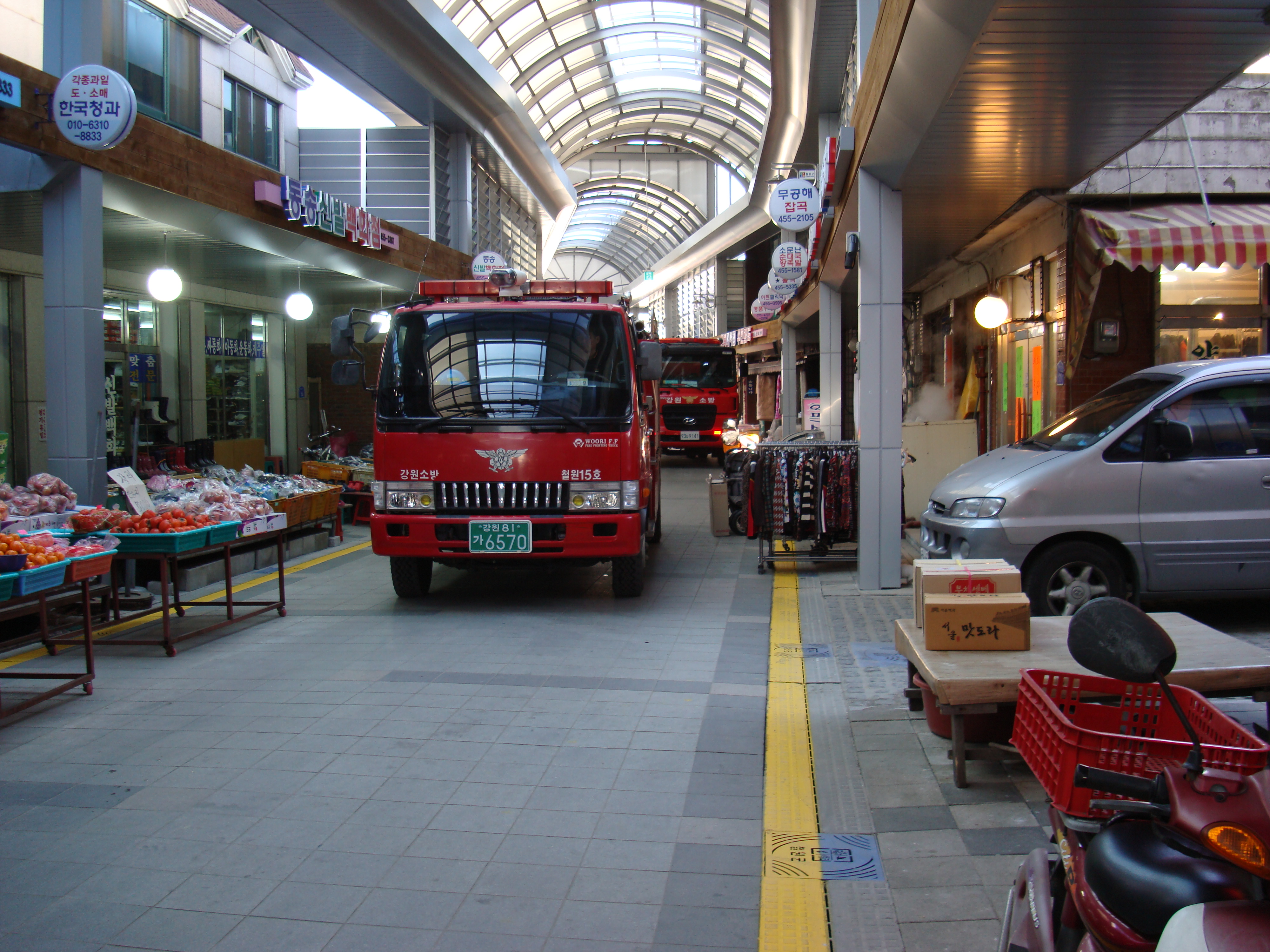 철원소방서(서장 안중석) 동송119안전센터는 동송시장 소방통로 확보 훈련을 실시 하였습니다. 소방차가 지나가야 되니 노란선 밖으로는 나오지 말아 주세요~~^^