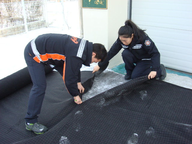 철원소방서(서장 안중석) 동송119센터에서는 2012.01.26(목) 청사 차고 앞 안전사고 예방차원에서 미끄럼방지 보온덮개를 설치 하였습니다.