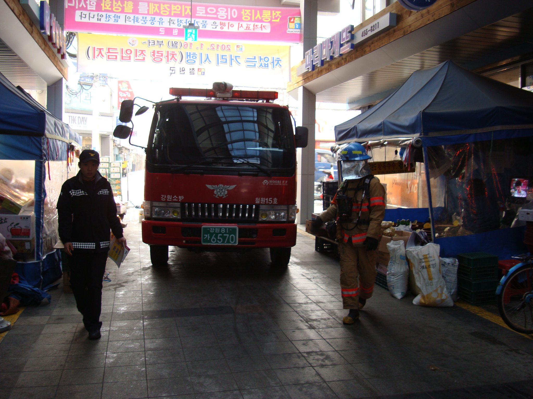 철원소방서(서장 안중석) 동송 119안전센터에서는 2012.01.27(금) 동송시장 소방통로 확보 훈련을 실시 하였습니다.