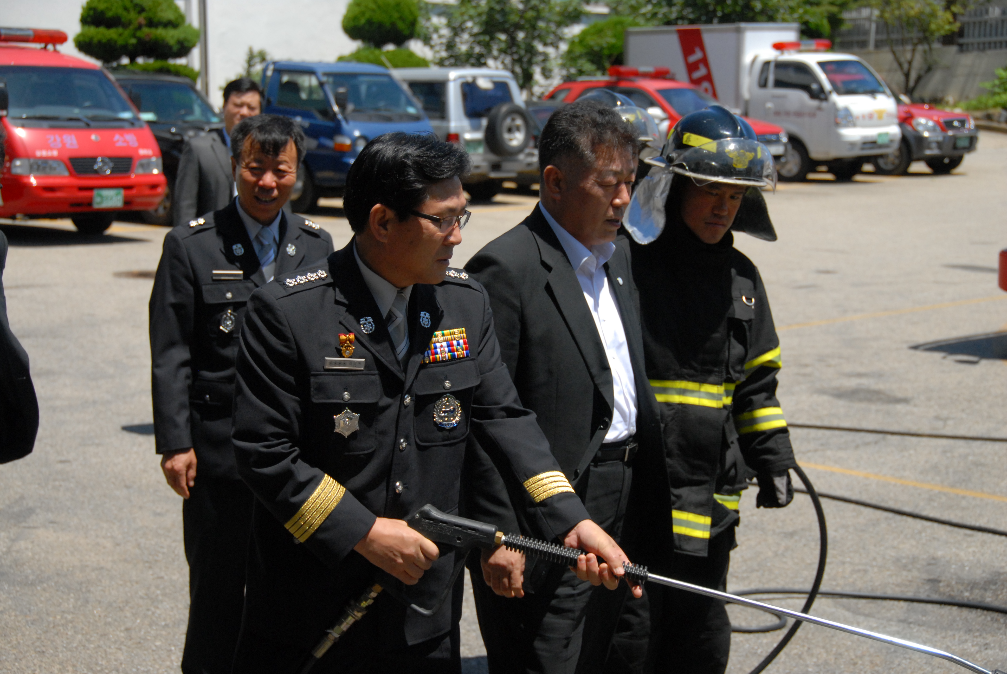 이에 오 본부장님은 "원칙이 바로서는 소방문화정착을 위해 노력해 달라"고 당부하셨으며, 청사후정에서 차량상태 확인 및 산화장비 작동 시범을 시현하셨습니다.