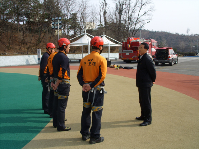 이번 훈련은 봄철 산악사고 발생에 대비한 인명구조훈련으로 인공암벽등반훈련, 산악용 들것을 활용한 구조훈련, 도르레를 활용한 구조훈련 등의 내용으로 실시하였다.