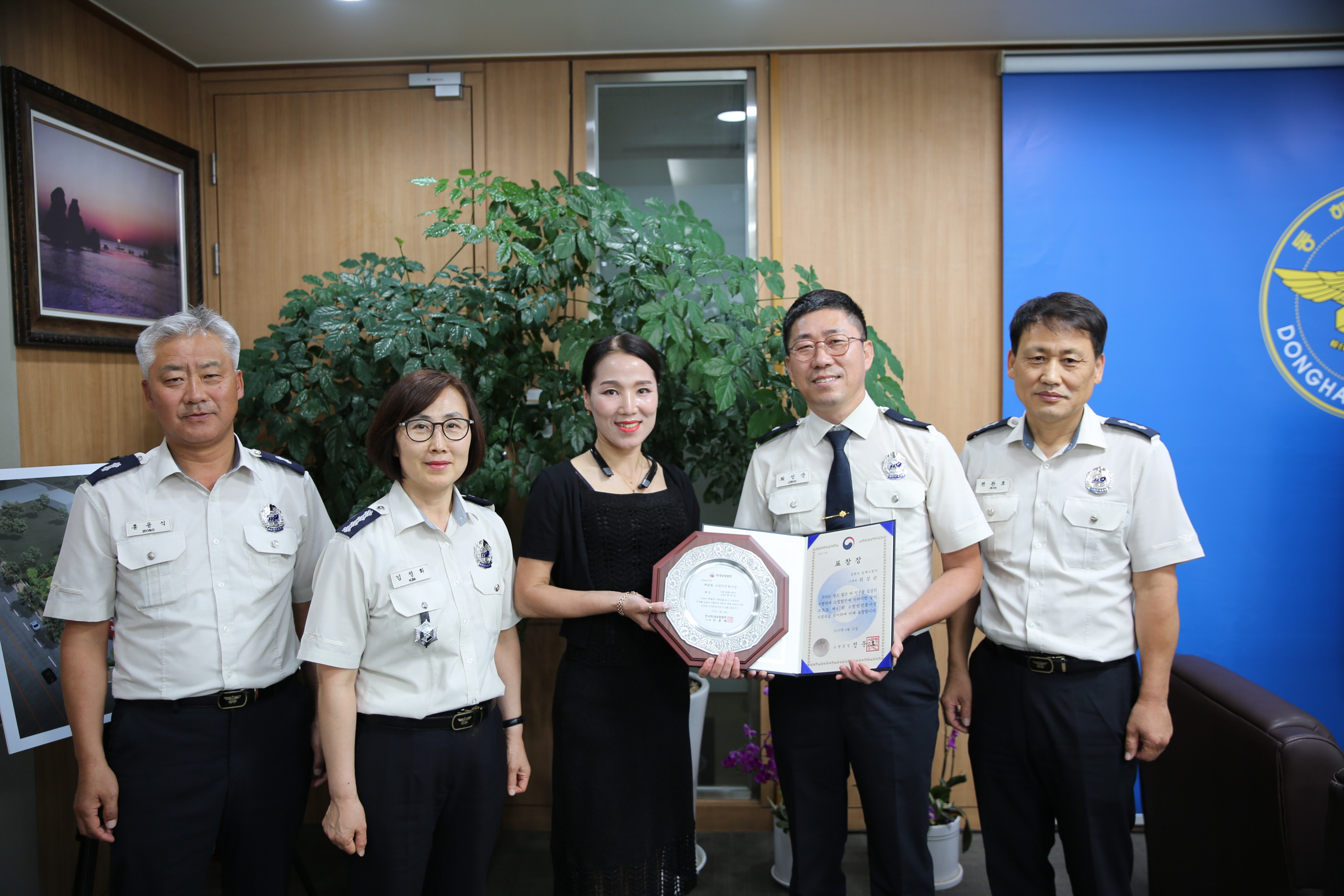 동해소방서(서장 김정희)는 26일 오후 서장실에서 제47회 소방안전봉사상 대상수상을 한 천곡119안전센터 최성순 소방위에 대한 꽃다발 증정식을 가졌다.