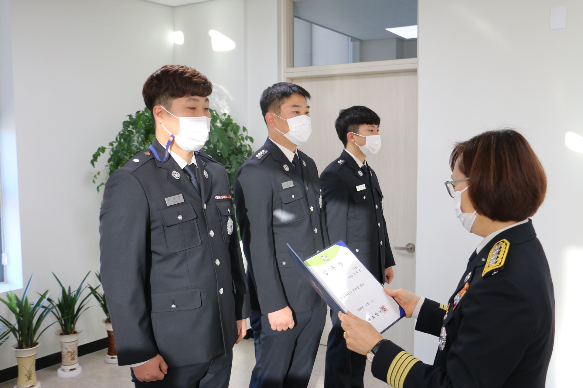 동해소방서(서장 김정희)는 1일 오전 9시 서장실에서 서내 인사발령자 3명(승진 1, 서내전보 2)에 대한 임용장 수여식을 실시했다고 밝혔다.
