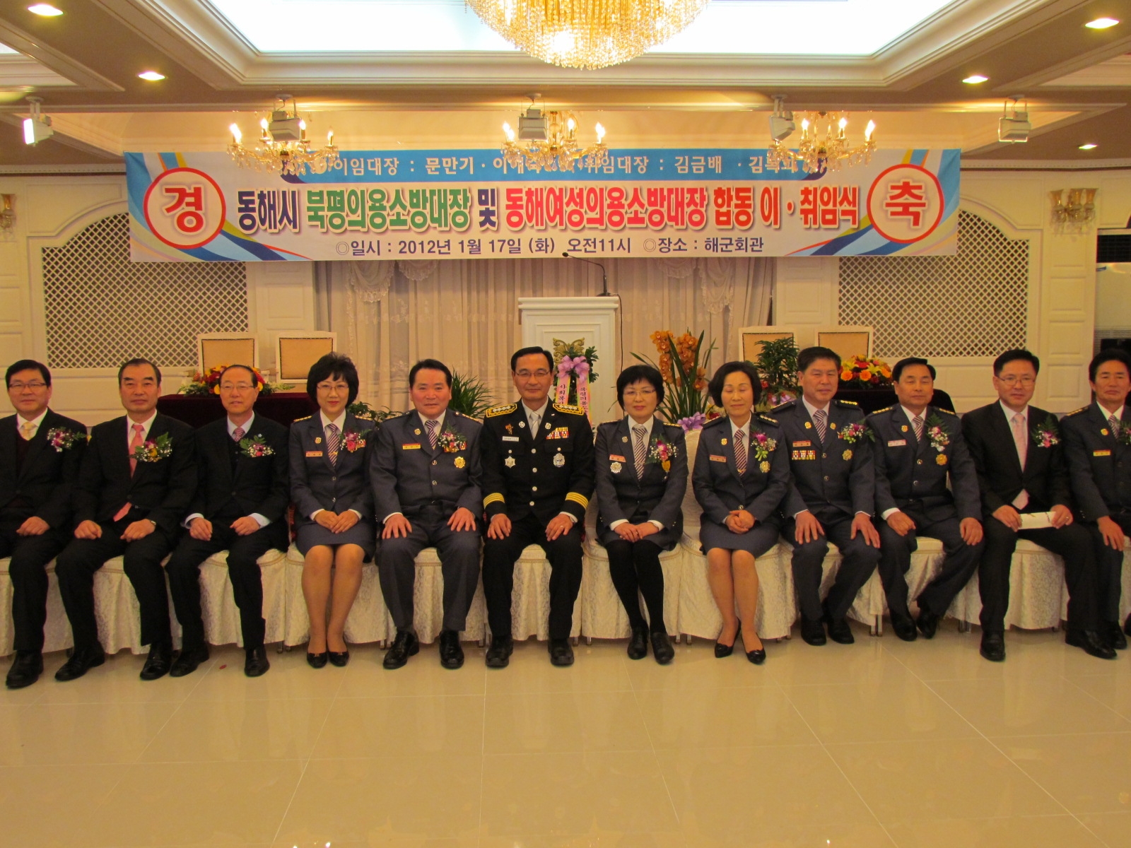 동해소방서(서장 김기성)는 17일 오전 11시 동해시 천곡동 해군회관에서 국회의원, 도ㆍ시의원, 기관ㆍ단체장, 소방공무원 및 의용소방대원 180여명이 참석한 가운데 동해시 북평ㆍ여성의용소방대장 합동 이ㆍ취임식 행사를 가졌습니다.