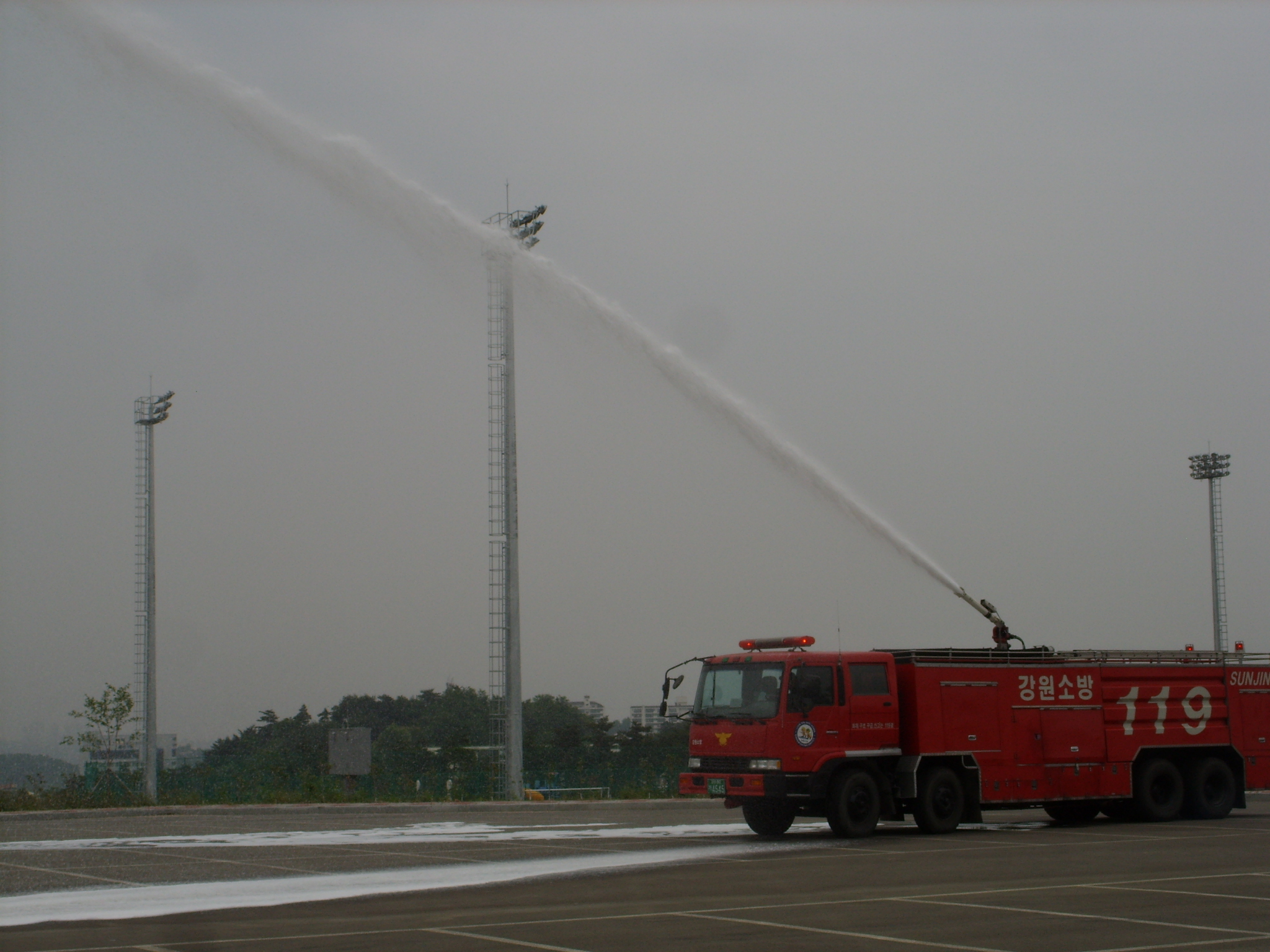 동해소방서(서장 김기성)는 8일 동해 종합운동장에서 고성능화학차 작동시연회를 가졌다.