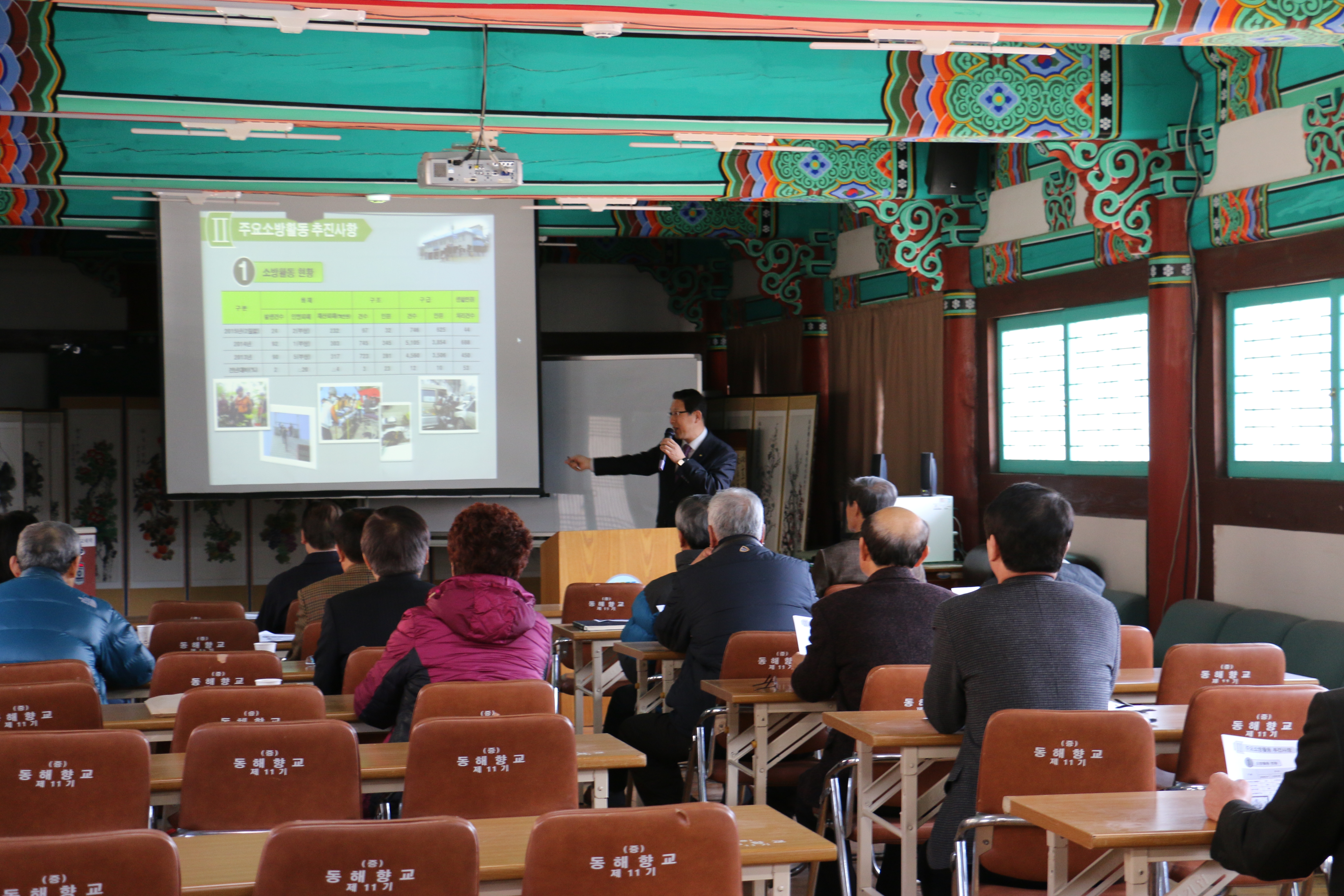 주항중 동해소방서장은 14일(토) 오후 2시 부곡동 소재 동해향교 명륜당에서 유교대학 수강생 40명 대상으로 지역사회 안전문화의식 정착을 위한 특별 소방안전교육을 실시했다.