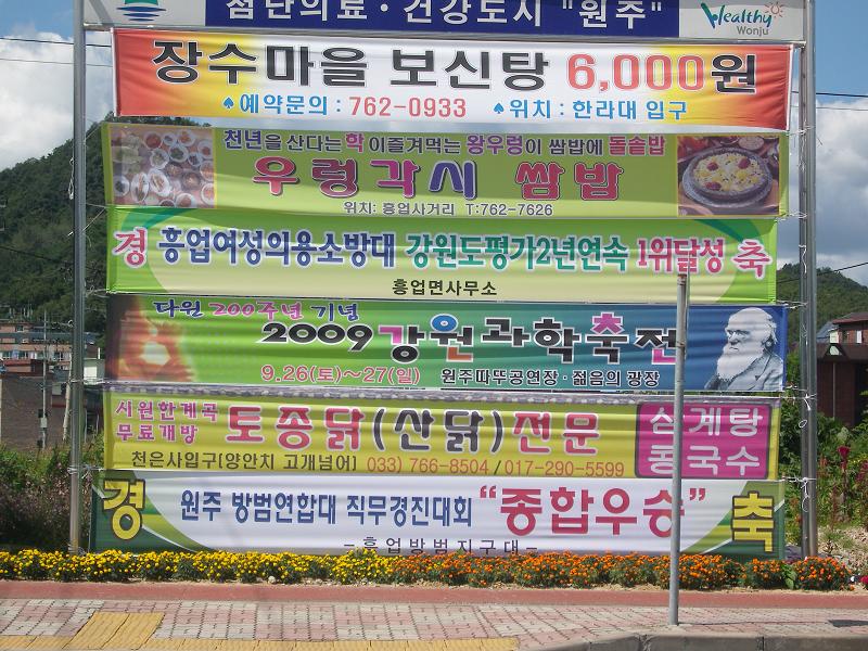 특히, 한라대 사거리에 축하 프래카드를 설치하여