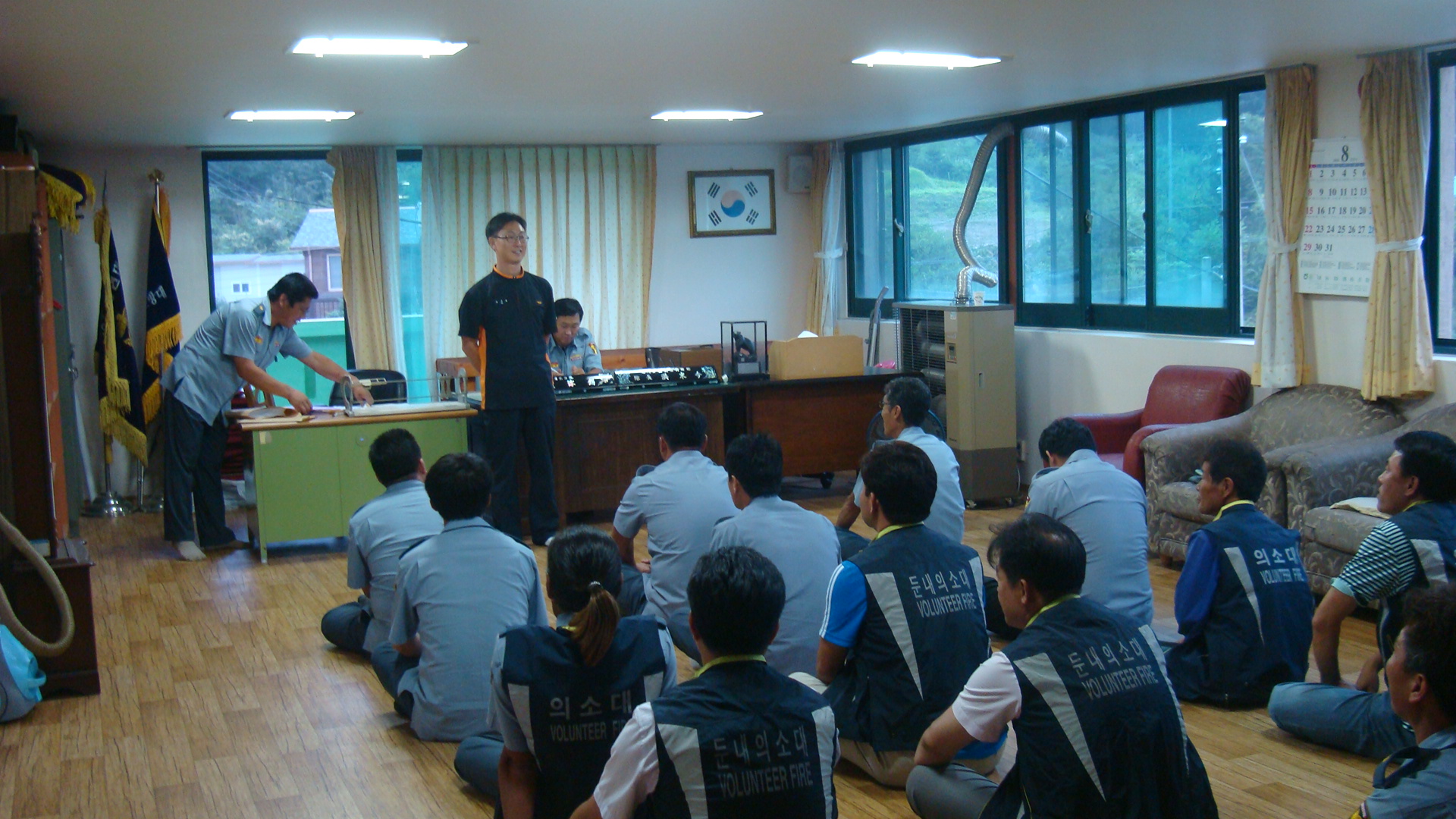 둔내의용소방대에서는 대장 최순석외 17명은 8월 16일(월)정기교육을