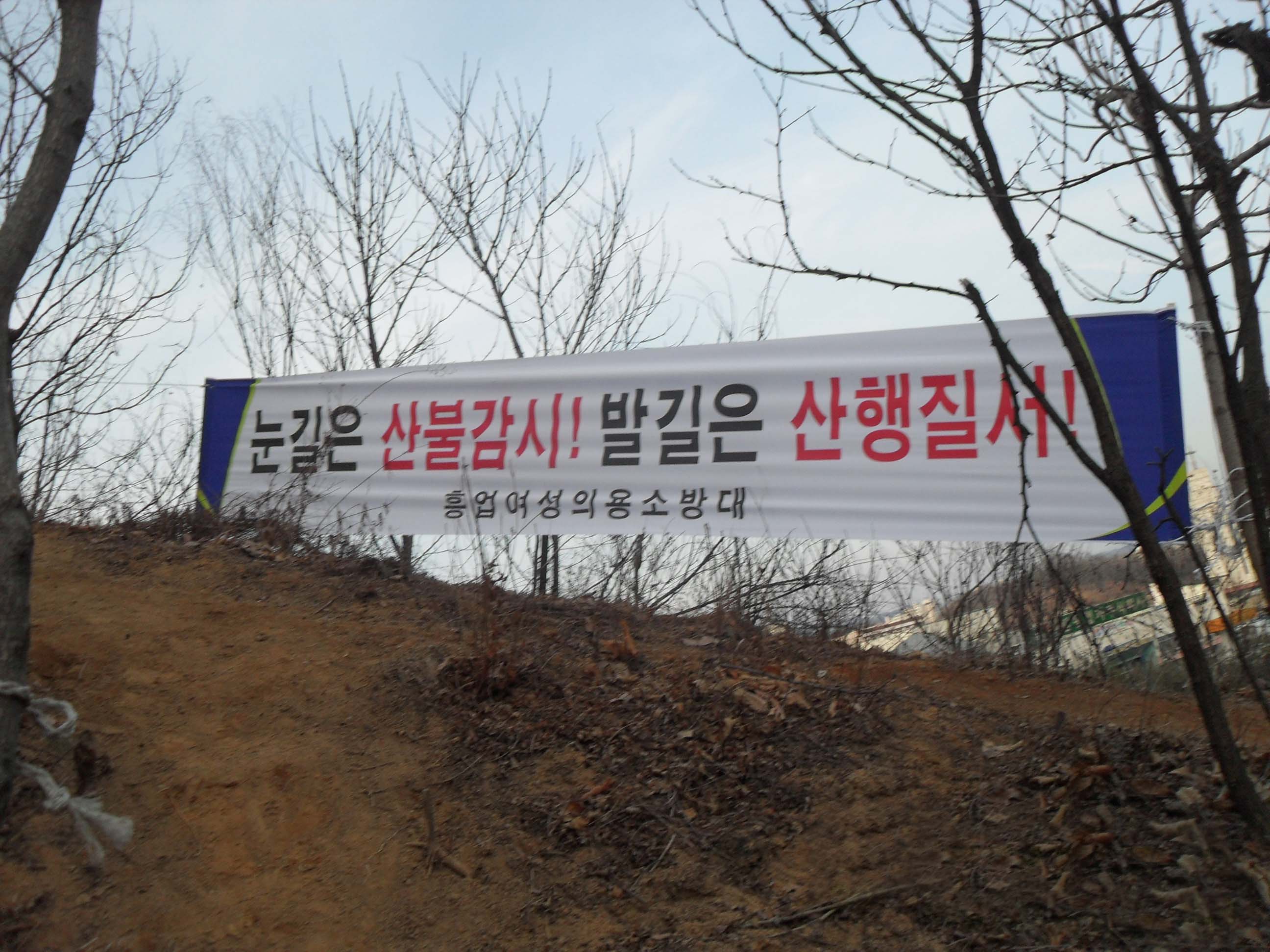 2012년 2월 28일 (10:00) 흥업여성의용소방대(대장 오오석)는 2012년 봄철 산불과 관련된 소방대책의 일환으로 흥업면 사제리 복거동 등산로(봉화산)에 산불예방 홍보용 플래카드를 걸었습니다.