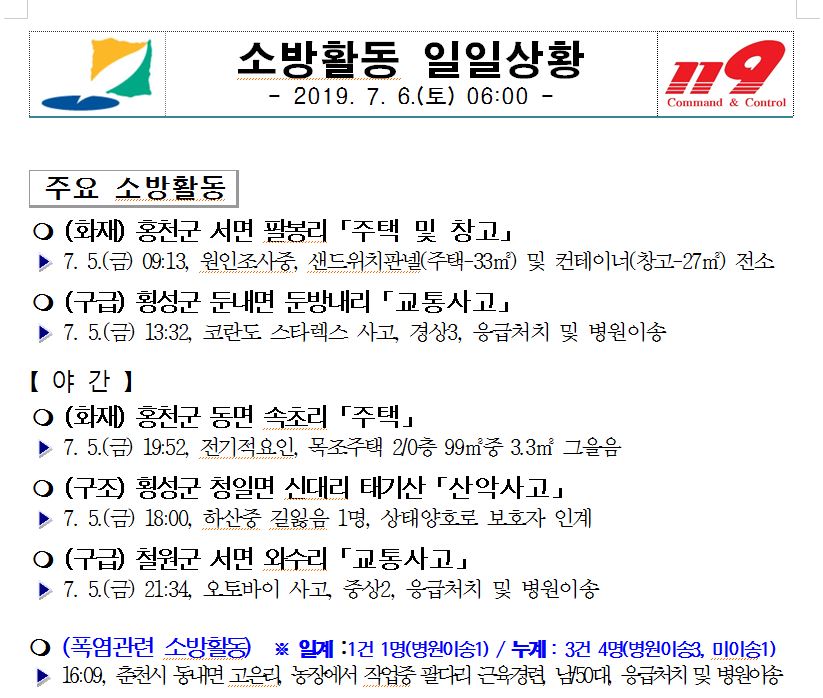소방활동 일일상황(7. 6. 토) 06:00