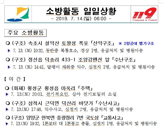 소방활동 일일상황(7. 14. 일) 06:00