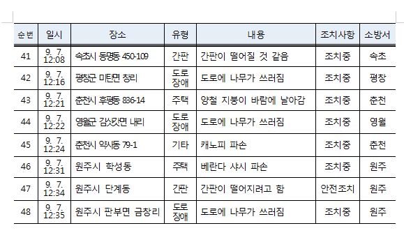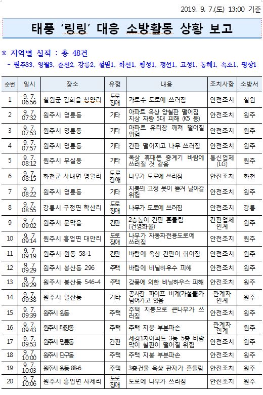 태풍 피해 현황 (13:00 기준)