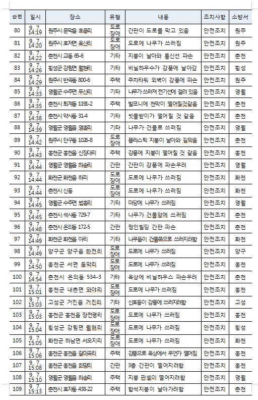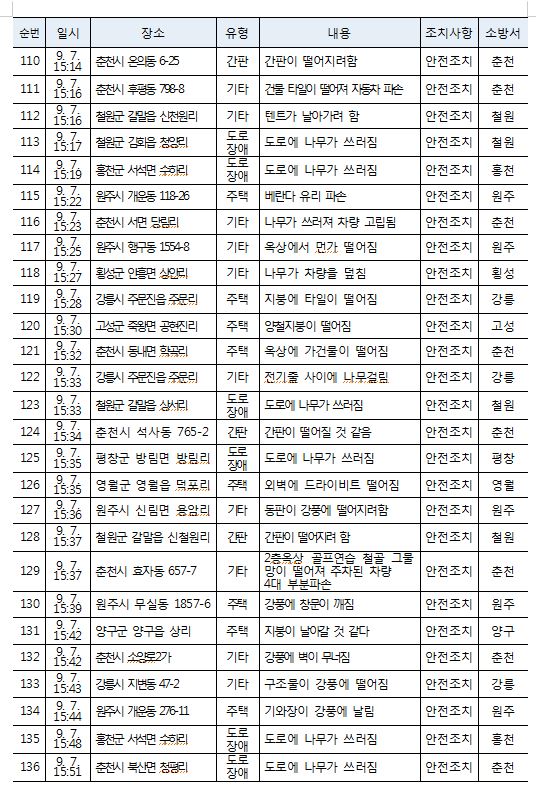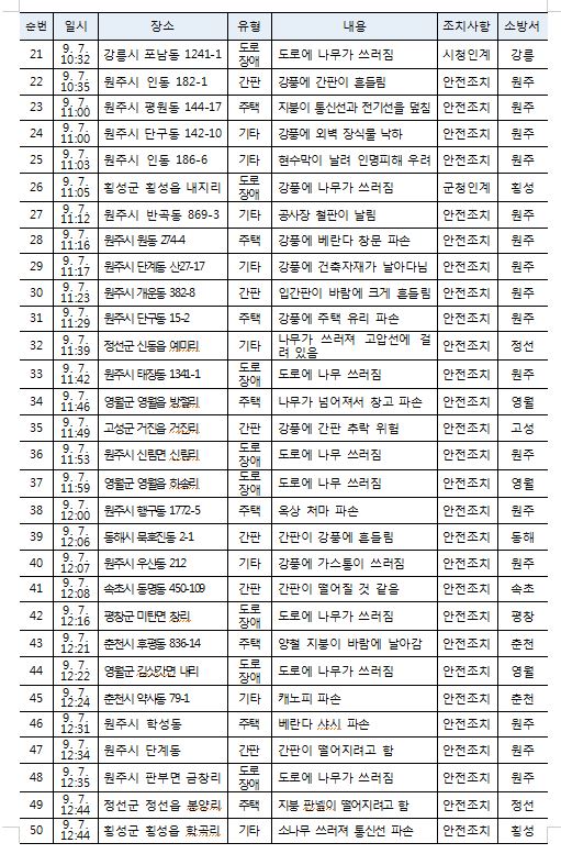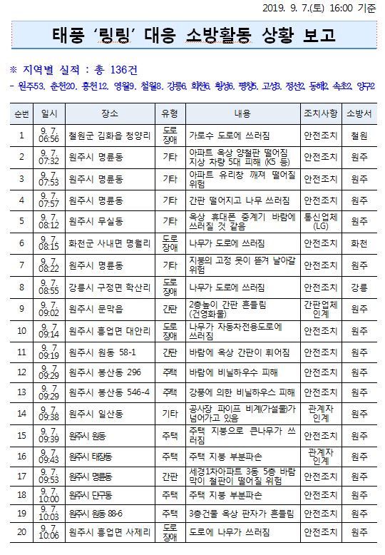 태풍 피해 현황 (9. 7. 토) 16:00