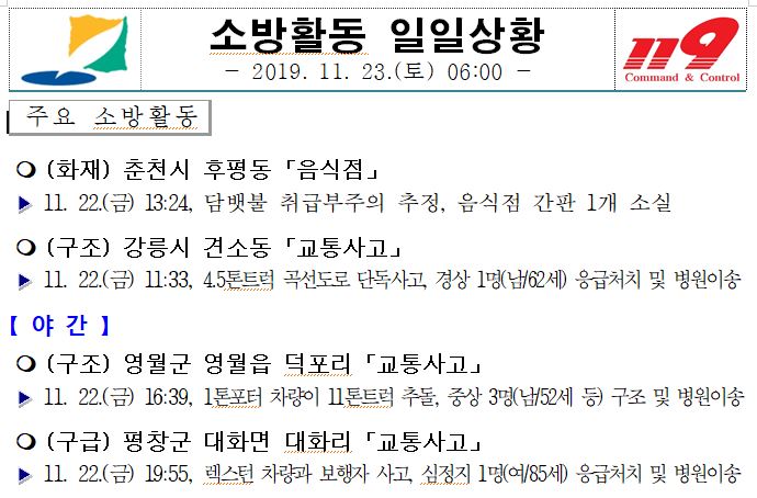 소방활동 일일상황(11.23. 토) 06:00