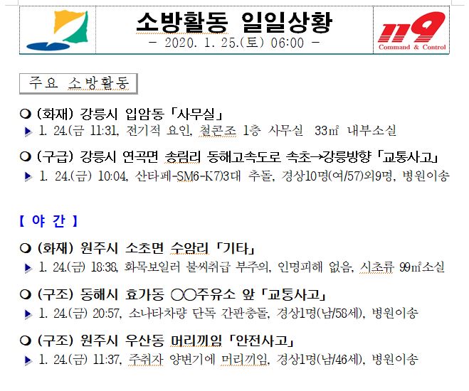 소방활동 일일상황 (1. 25. 토) 06:00