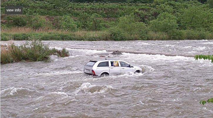 ◆내용 : 오색천 가교를 건너던 차량이 불어난 강물에 가교에서 5m 떠 내려가 강 중간에 고립된 상황.
