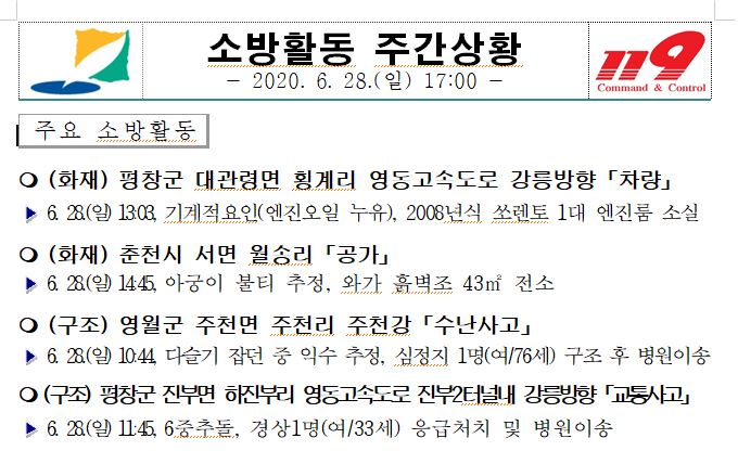 소방활동 주간상황 (6. 28. 일) 17:00