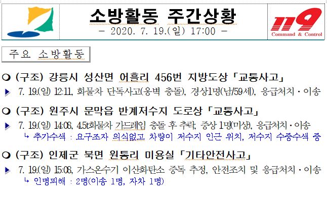 소방활동 주간상황 (7. 19. 일) 17:00