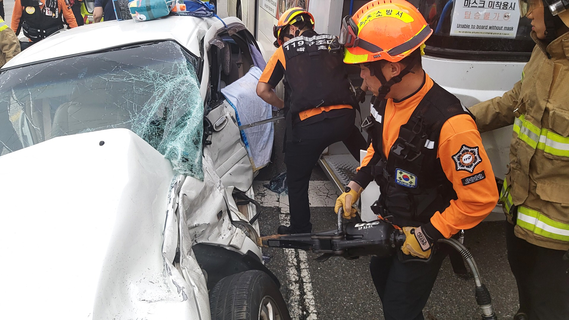 - 속초 버스&승용차량 교통사고 현장입니다.
