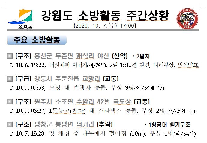 소방활동 주간상황 (10. 7. 금) 17:00