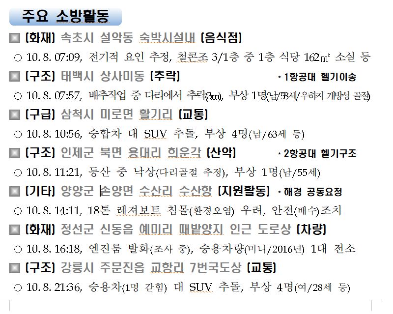 소방활동 주간상황 (10. 8. 목) 17:00