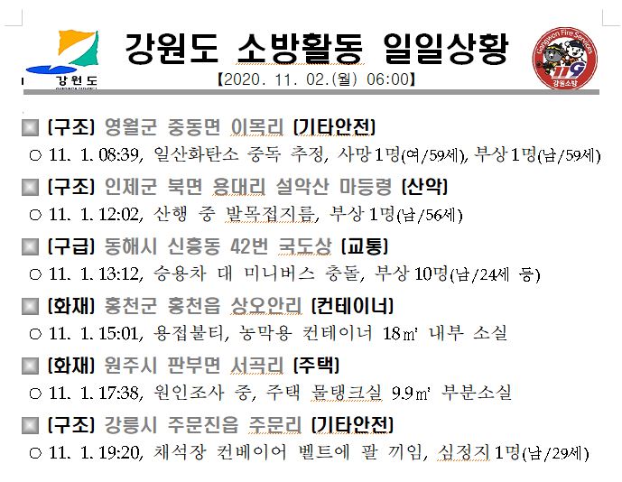 강원도 소방활동 일일상황(11. 2. 월) 06:00
