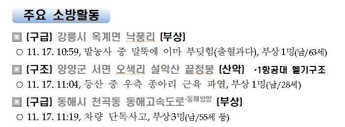 강원도 소방활동 주간상황(11. 17. 화) 17:00