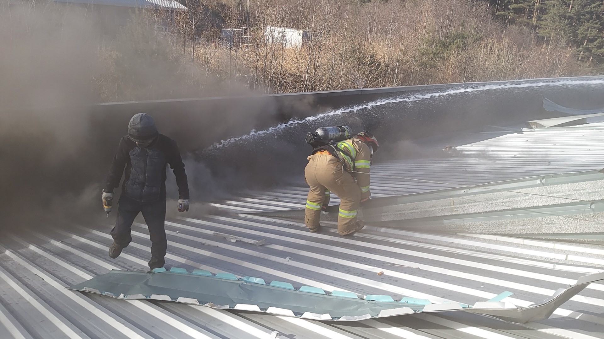 개 요: 지붕작업 중 난로가 넘어지며 연소확대