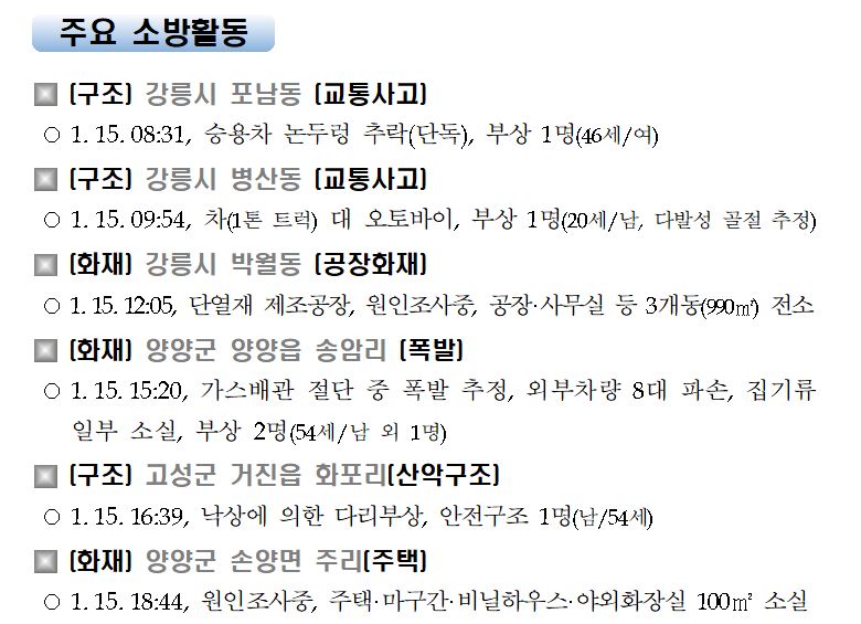 강원도 소방활동 일일상황(1. 16. 토) 06:00