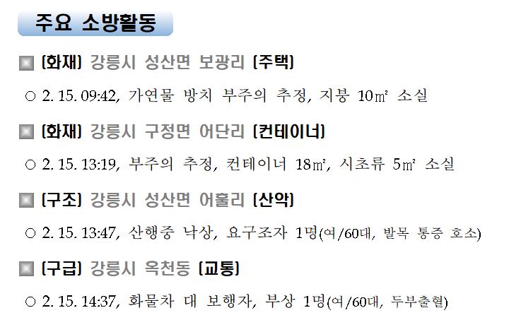 강원도 소방활동 주간상황(2. 15. 월) 17:00