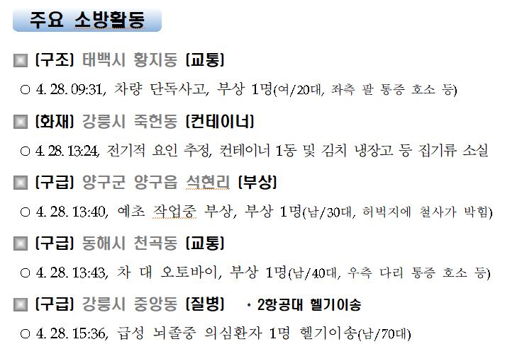 강원도 소방활동 주간상황 (4. 28. 수) 17:00