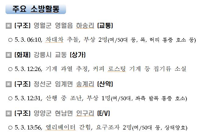 강원도 소방활동 주간상황 (5. 3. 월) 17:00