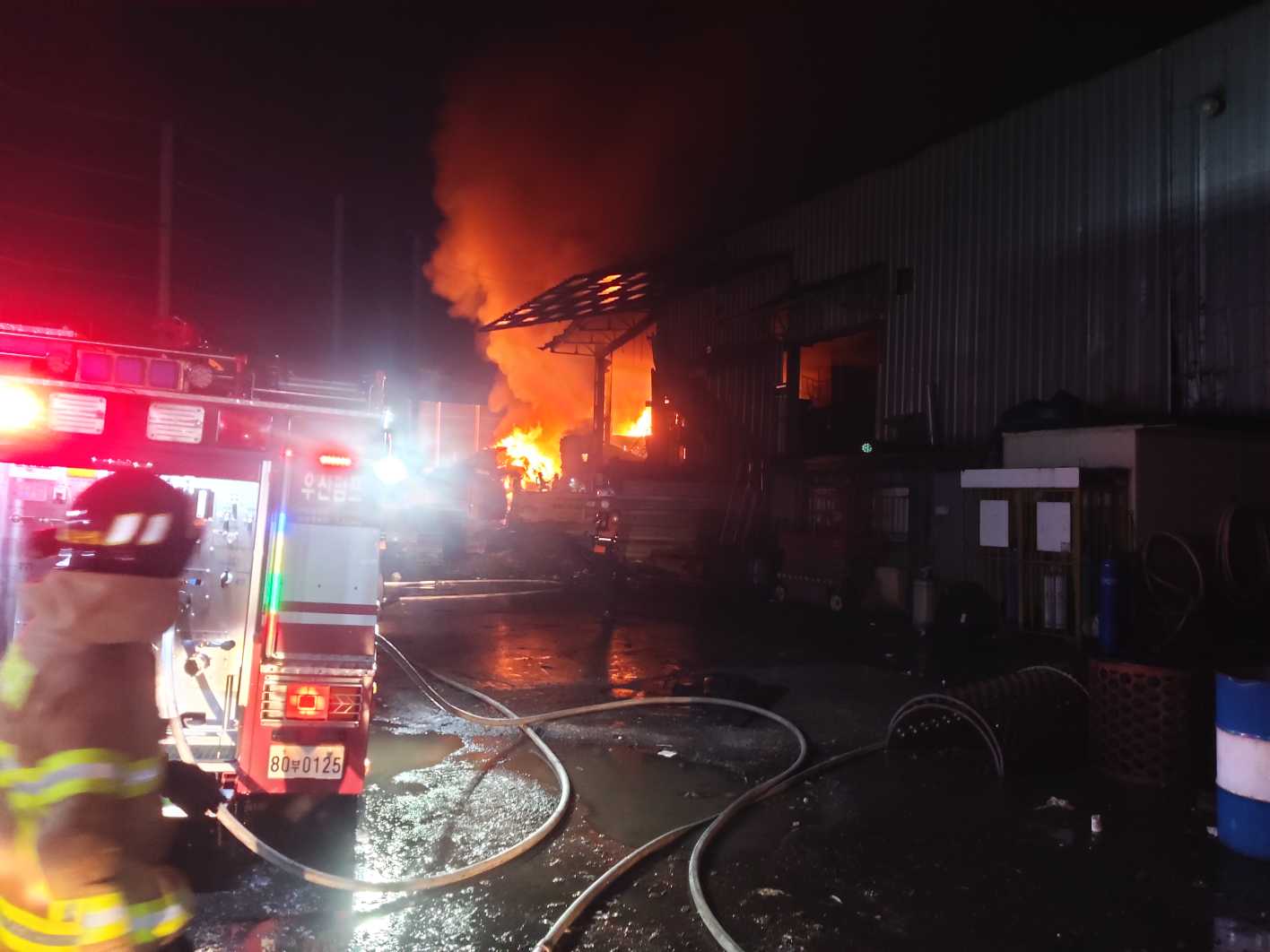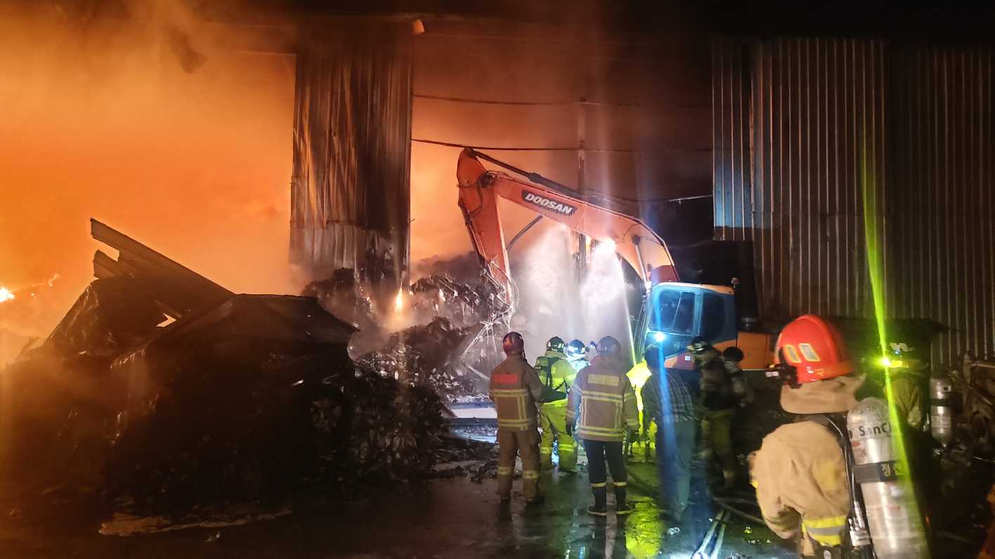 원인 및 피해액: 금일 오전 재 조사 예정(플라스틱 페기물 약500톤 및 파쇄기 2기 소실)