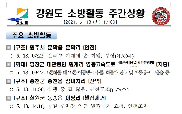 강원도 소방활동 주간상황 (5. 18. 화) 17:00