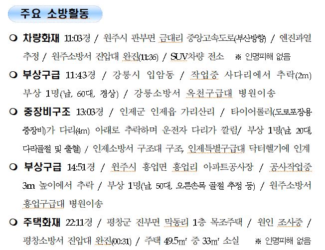 강원도 소방활동 일일상황 (7. 15. 목) 06:00