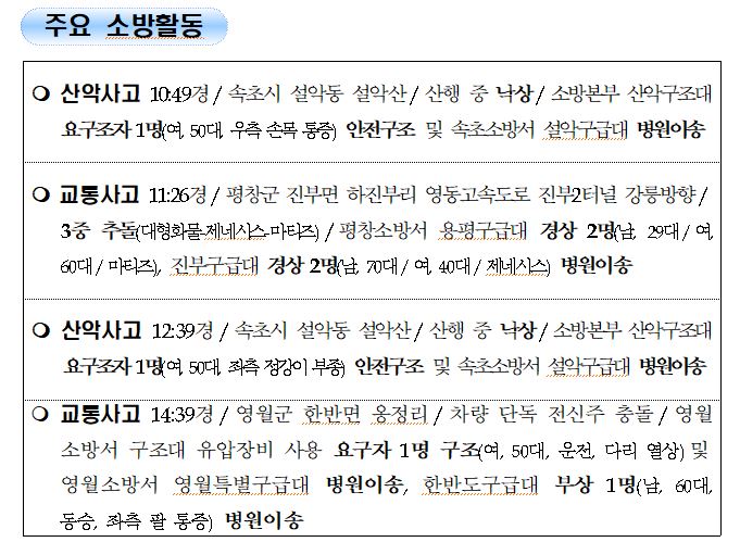 강원도 소방활동 주간상황 (7. 23. 금) 17:00